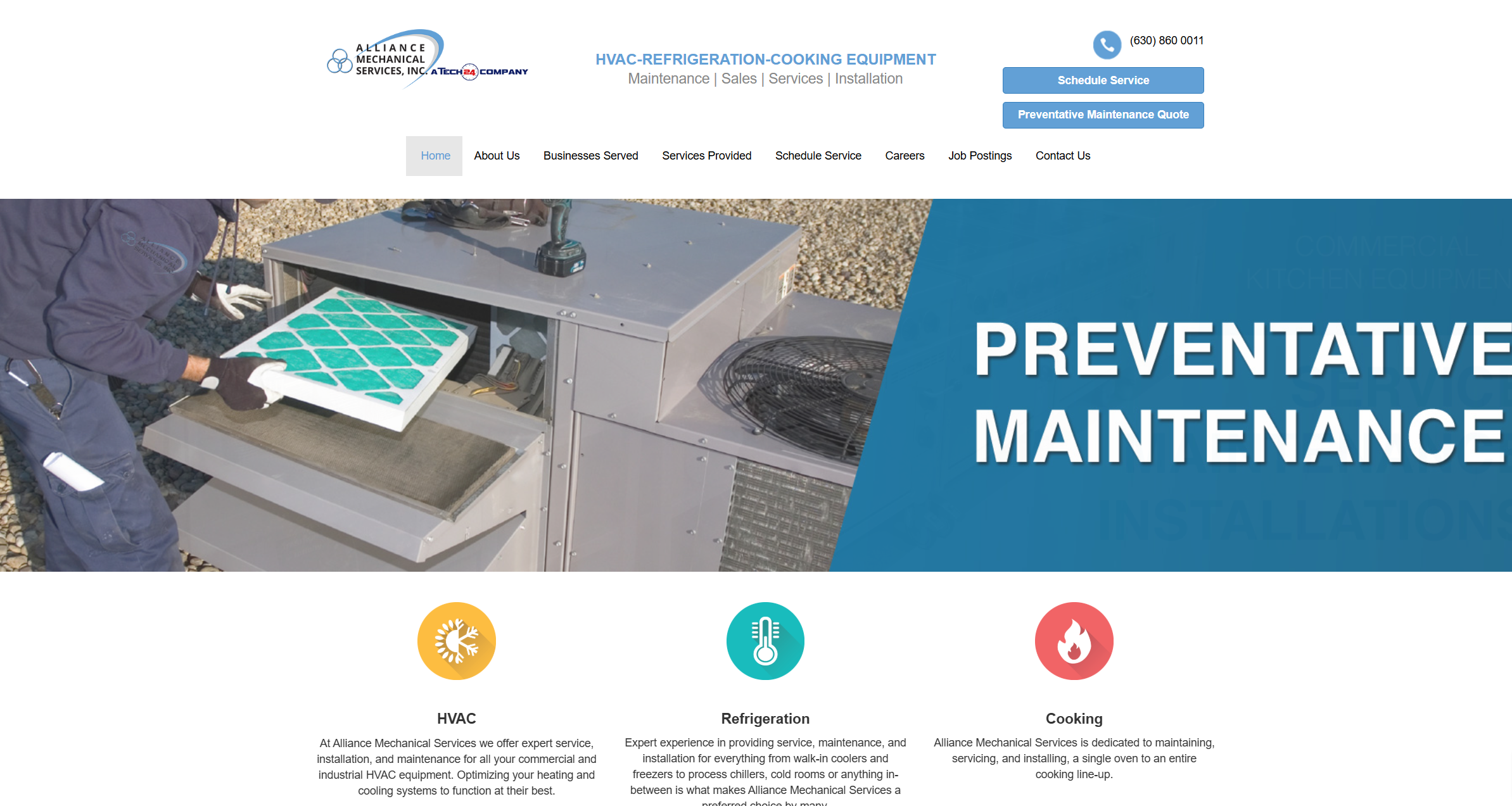 A service business site focusing on commercial HVAC, refrigeration, and cooking equipment. I built the service description pages, contact & quote request forms, and structured their service area coverage.