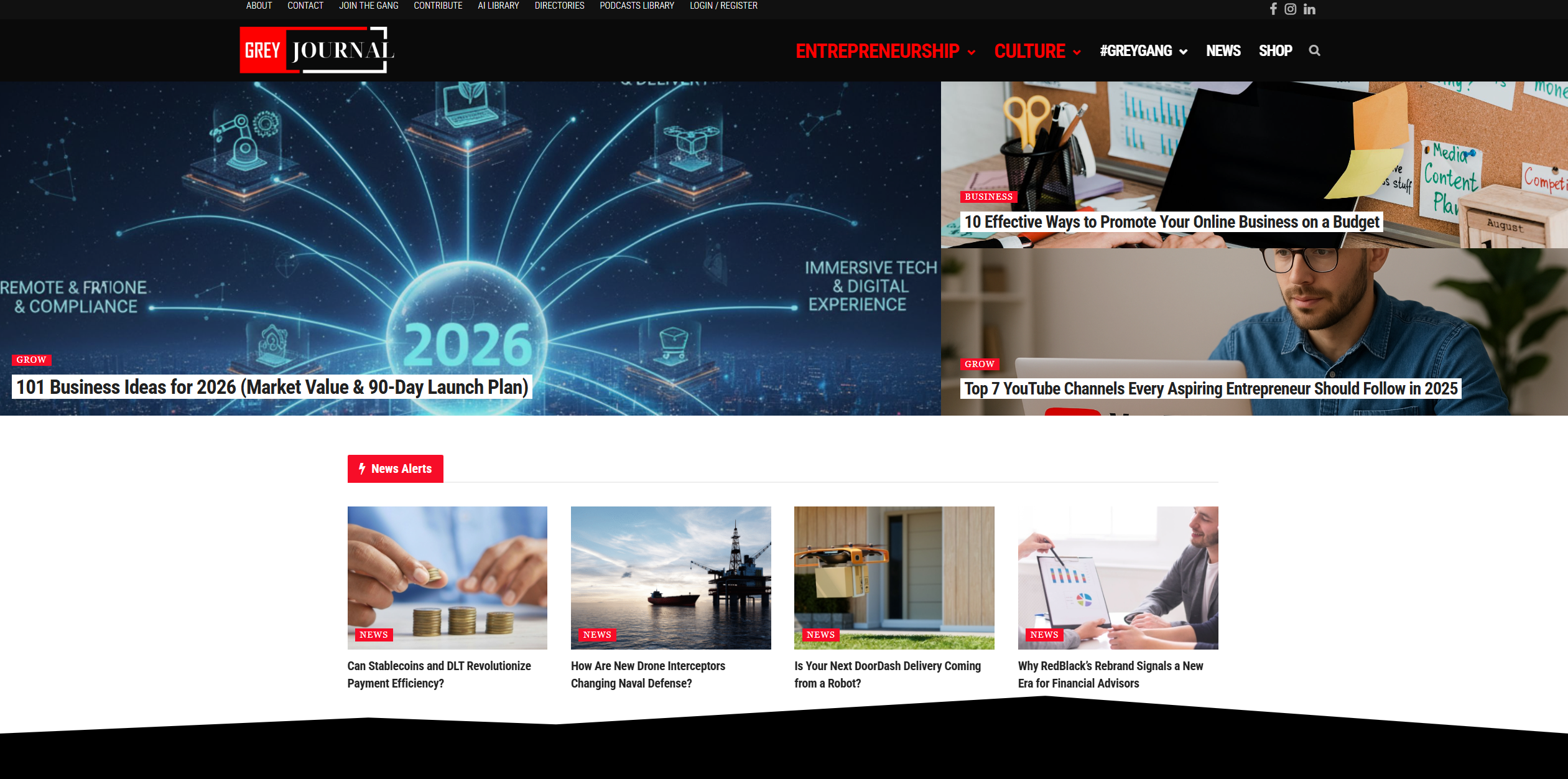 A digital entrepreneurship and lifestyle magazine that blends business insights with culture and creativity. As a web developer, I contributed to building and optimizing its dynamic, magazine-style platform—designed for smooth navigation across diverse content categories like tech, finance, travel, and style. The site integrates editorial features, community engagement tools, and an e-commerce section (GREY.style), providing a seamless user experience. This project reflects my ability to develop visually appealing, content-rich websites that balance performance, scalability, and user engagement.