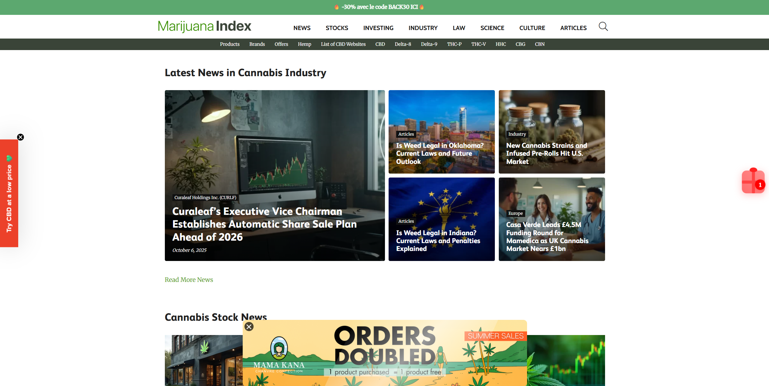 A digital financial marketplace hub that tracks leading publicly traded cannabis and hemp companies worldwide. I worked on developing a responsive analytics website with real-time stock indices (U.S., Global, Canadian, Australian) and educational editorial content, ensuring data accuracy, intuitive charts, and a professional interface for investors and enthusiasts.