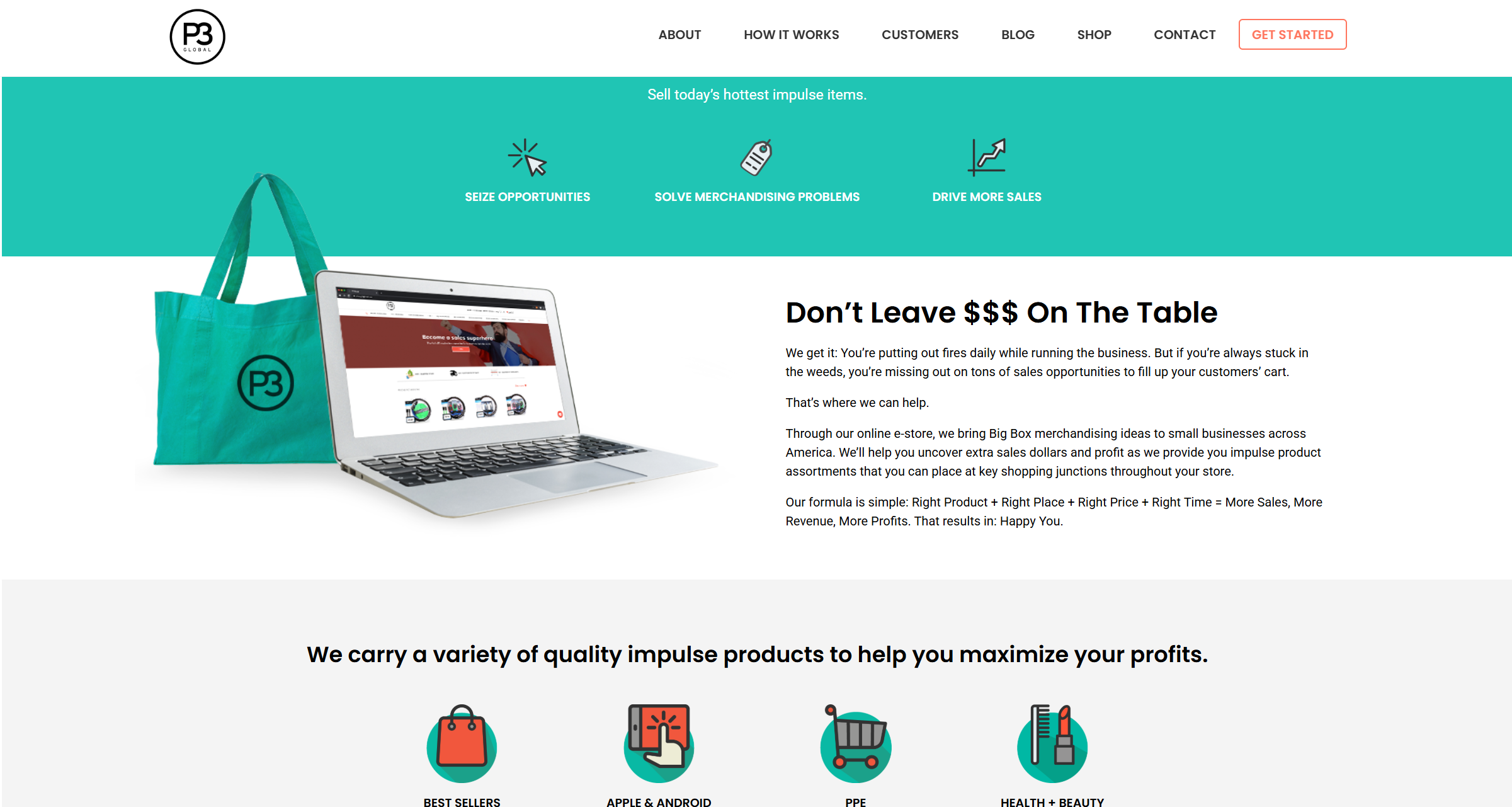 An online store and merchandising solution supplying high-margin impulse items to small businesses. I contributed by developing a responsive storefront and content pages (e.g. “How It Works”, Blog), integrating product display, navigation, and business-oriented UX.