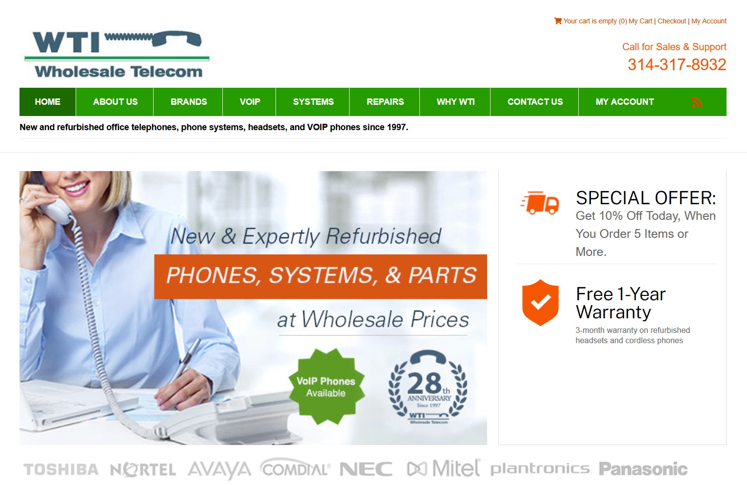 An online wholesale marketplace for new and refurbished telephony systems and VOIP equipment. My contributions include product listings, detailed spec pages, category navigation, and order/inquiry flows.